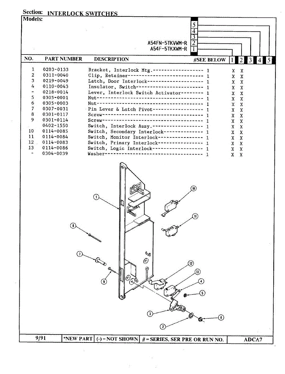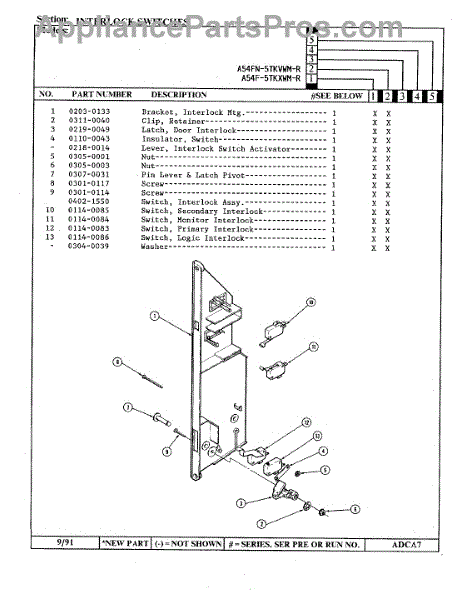 Parts for Admiral A54FN-5TKVWM-R: 06 - Interlock Switches Parts