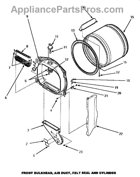 The Dryer Glide Felt Pad is an OEM part for Whirlpool dryers. It is located at the front of the dryer drum. It provides a smooth surface for the drum to glide on, reducing friction and allowing it to rotate freely. This helps to prevent excessive wear and noise during the drying cycle.
