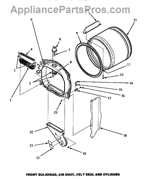 The Dryer Glide Felt Pad is an OEM part for Whirlpool dryers. It is located at the front of the dryer drum. It provides a smooth surface for the drum to glide on, reducing friction and allowing it to rotate freely. This helps to prevent excessive wear and noise during the drying cycle.