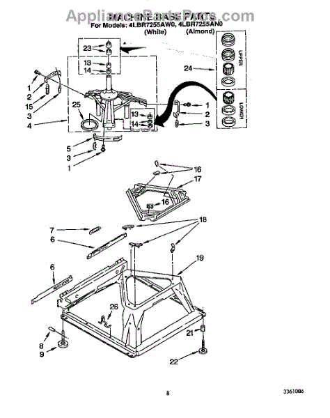 The Sound Dampening Ring is an OEM replacement part for Whirlpool washing machines. Located within the clutch housing, it serves to minimize noise transmission from internal components. Causes relate to years of absorbing internal impacts fatiguing the damping material. Buildup of grime and detergent residue in its ridges may diminish noise-isolating effectiveness over time. Symptoms of failure include: