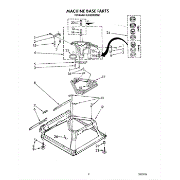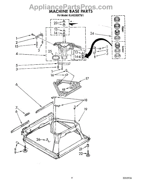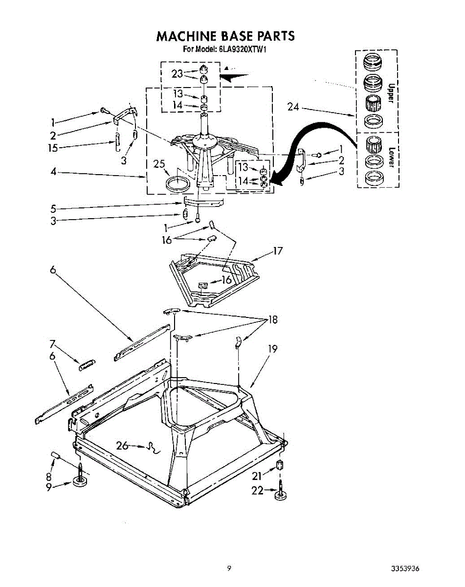 Used for direct drive washing machines. Complete assembly includes 2 level mechanism links, 1 level mechanism spring, 1 knurled pin, 2 rear feet, 1 pad plate, 1 suspension plate, 1 base pad, and 1 suspension spring retainer.