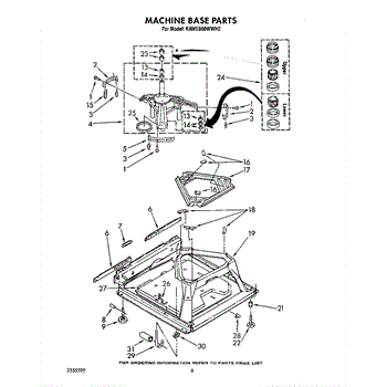 Used for direct drive washing machines. Complete assembly includes 2 level mechanism links, 1 level mechanism spring, 1 knurled pin, 2 rear feet, 1 pad plate, 1 suspension plate, 1 base pad, and 1 suspension spring retainer.