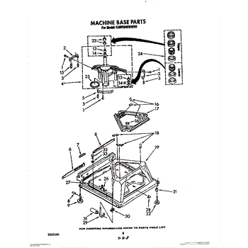 Used for direct drive washing machines. Complete assembly includes 2 level mechanism links, 1 level mechanism spring, 1 knurled pin, 2 rear feet, 1 pad plate, 1 suspension plate, 1 base pad, and 1 suspension spring retainer.