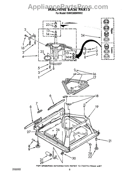 The Bearing and Seal Kit is an OEM component for Whirlpool and KitchenAid front-load washing machines. The kit includes 2 center post bearings, 3 agitator shaft seals, and 1 center post seal. These internal seals help retain lubrication inside the motor shaft housing, while the bearings allow for smooth rotation of critical components like the drive pulley. Continuous belt rubbing and water exposure diminish their lifespan over time. Symptoms of worn motor seals or bearings include: