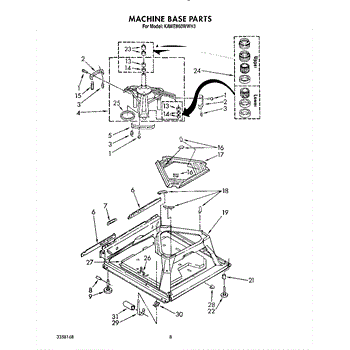 Used for direct drive washing machines. Complete assembly includes 2 level mechanism links, 1 level mechanism spring, 1 knurled pin, 2 rear feet, 1 pad plate, 1 suspension plate, 1 base pad, and 1 suspension spring retainer.