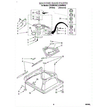 Used for direct drive washing machines. Complete assembly includes 2 level mechanism links, 1 level mechanism spring, 1 knurled pin, 2 rear feet, 1 pad plate, 1 suspension plate, 1 base pad, and 1 suspension spring retainer.