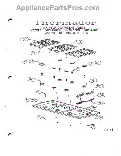 Parts for Thermador SGCS456RS: 06 - Maintop Component Parts