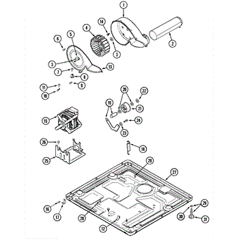 This dryer blower housing encloses the blower wheel and directs air from the drum through the lint filter to the exhaust vent. Replacing a damaged housing restores proper airflow for consistent drying and helps keep lint contained within the airflow path.