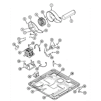 • Encloses and supports the blower wheel while channeling air from the drum to the exhaust