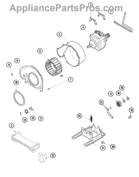The Belt Tension Pulley is an OEM part for Whirlpool clothes dryers. It utilizes a tension mechanism to maintain precise alignment and contact between the drive belts and motor pulleys during operation. Symptoms of a failed belt tension pulley include: