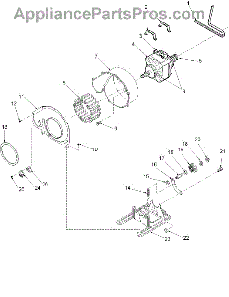 Connects the motor to the drum for tumbling. Replace when stretched, worn, or broken causing the drum not to turn. Confirm fit with your model number.