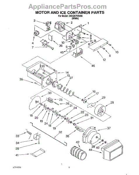Parts for Whirlpool 3XKGN705000: 06 - Motor And Ice Container Parts