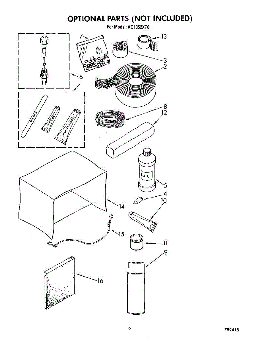 Parts for Whirlpool AC1352XT0: 06 - Optional Parts
