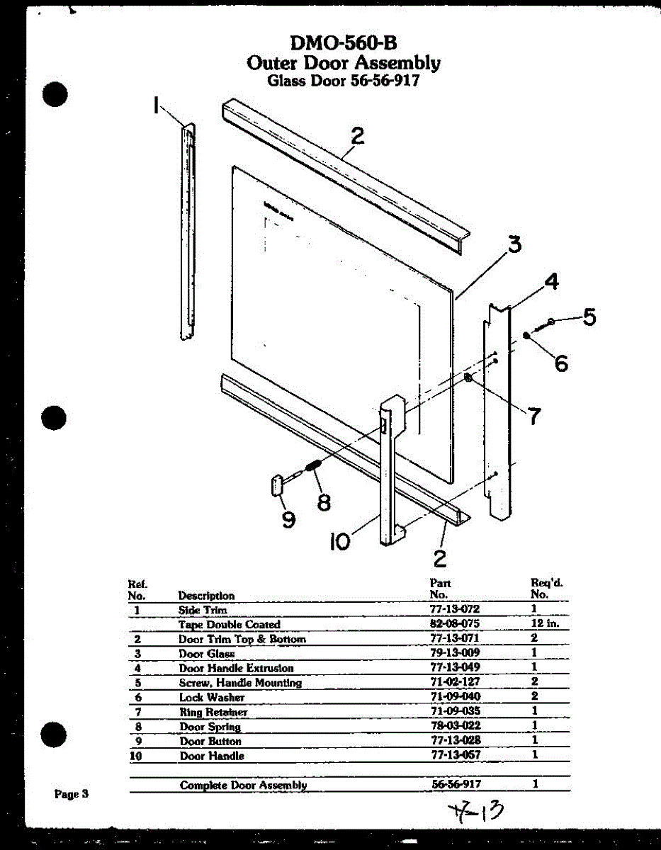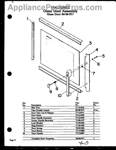 Parts for Amana DMO-560: 06 - Outer Door Assy Parts