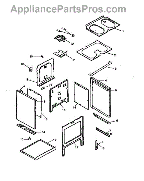 Mounting screw secures panels, brackets, and trim to the appliance frame. Replace if screw is stripped, missing, or damaged to restore secure fastening.