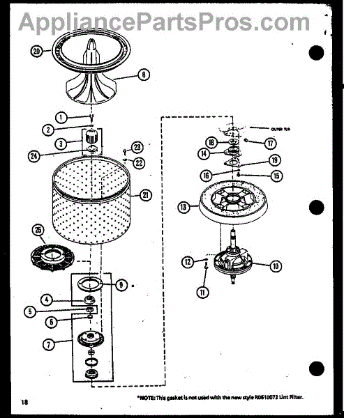 This replacement main bearing assembly supports the washer's drive/spin system. It keeps the inner basket and drive shaft rotating smoothly and quietly, helping maintain alignment and reducing vibration during wash and high-speed spin.