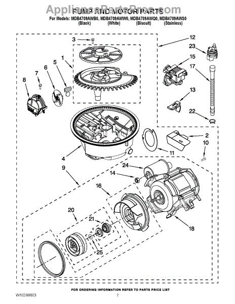 This replacement part is a dishwasher pump and motor assembly. The dishwasher pump and pump motor circulate water through the dishwasher's spray arm. When the spray arms aren't spraying properly, this could mean that it's time for a new pump and motor assembly. Luckily replacing this part is a relatively simple process.Start by making sure the dishwasher is unplugged. After that shut off the water supply going to the dishwasher. Then disconnect the drain line from the garbage disposal or sink drain. Open the dishwasher door and pull out the bottom dish rack. Remove the upper dishrack from its track. Release the spray arm on the bottom of the washer. Then proceed to release the feed tube clips. Using a nut driver remove the bottom access panel and tow panel. Pull them out to remove them. Remove the power cable from the junction box, and disconnect the supply line from the inlet valve. Proceed to pull the dishwasher out of the counter. Tilt the dishwasher on its side and pull the hose from the drain pump. Remove the wire harness from the pump. Disconnect wires from diverter motor and circulation motor. Once complete, proceed to tilt the dishwasher upright and remove the pump and motor assembly from the bottom of the dishwasher. Replace with the new assembly.This replacement part is compatible with Whirlpool, Maytag, KitchenAid, Jenn-Air, Amana, Magic Chef, Admiral, Norge, Roper, and Sears/Kenmore brand dishwashers.