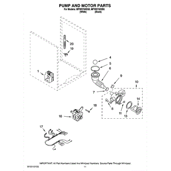 The Washer Drain Pump Assembly is an OEM part for Whirlpool washing machines. This assembly is essential for the washer's ability to drain water out of the drum after the wash and rinse cycles, ensuring clothes are properly spun and not left soaking wet.