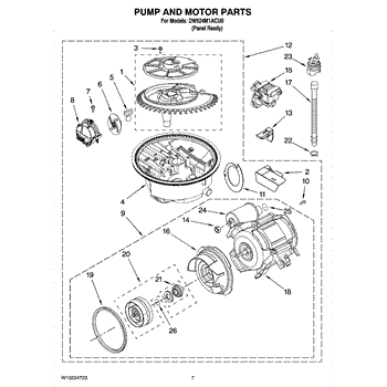 The Pump and Motor Assembly is an OEM part for Whirlpool dishwashers. This part is responsible for circulating water during the wash cycle and draining water at the end of the cycle.