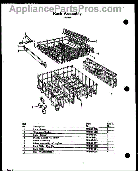 Parts for Amana ZDW-880: 06 - Rack Assy Parts