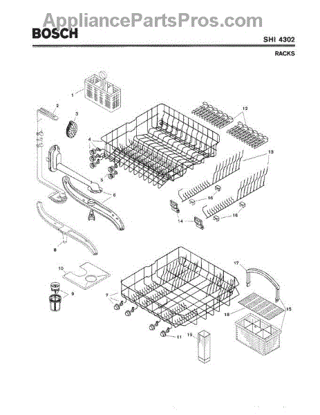 The Silverware Basket Assembly is an OEM part for Bosch dishwashers. This basket is located in the lower rack and is used to hold utensils securely during the wash cycle.