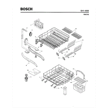 The Silverware Basket Assembly is an OEM part for Bosch dishwashers. This basket is located in the lower rack and is used to hold utensils securely during the wash cycle.