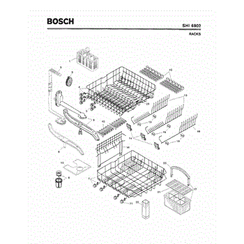 The Silverware Basket Assembly is an OEM part for Bosch dishwashers. This basket is located in the lower rack and is used to hold utensils securely during the wash cycle.