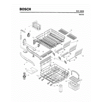 The Silverware Basket Assembly is an OEM part for Bosch dishwashers. This basket is located in the lower rack and is used to hold utensils securely during the wash cycle.