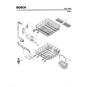 The Silverware Basket Assembly is an OEM part for Bosch dishwashers. This basket is located in the lower rack and is used to hold utensils securely during the wash cycle.