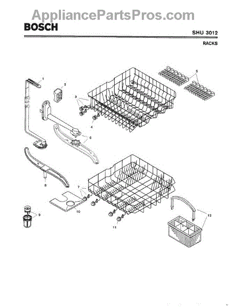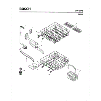 The Silverware Basket Assembly is an OEM part for Bosch dishwashers. This basket is located in the lower rack and is used to hold utensils securely during the wash cycle.