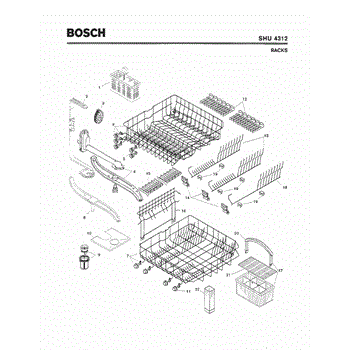 The Silverware Basket Assembly is an OEM part for Bosch dishwashers. This basket is located in the lower rack and is used to hold utensils securely during the wash cycle.
