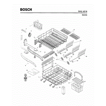 The Silverware Basket Assembly is an OEM part for Bosch dishwashers. This basket is located in the lower rack and is used to hold utensils securely during the wash cycle.