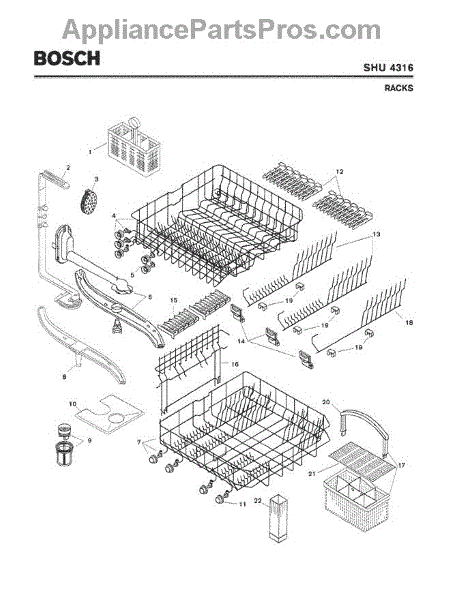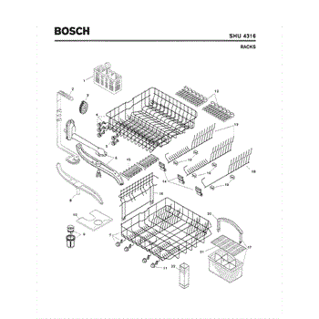 The Silverware Basket Assembly is an OEM part for Bosch dishwashers. This basket is located in the lower rack and is used to hold utensils securely during the wash cycle.