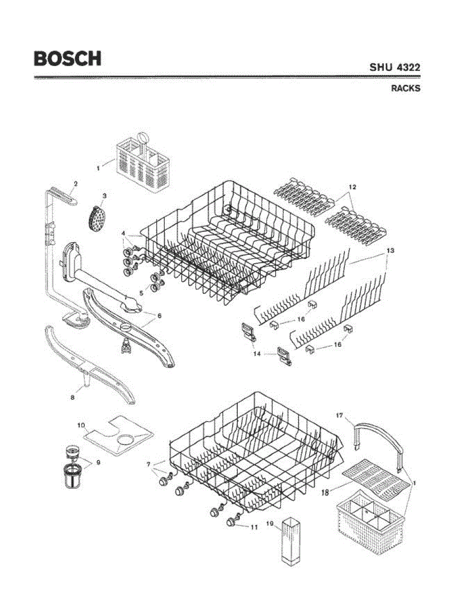 Parts for Bosch SHU4322 UC/12 (FD 8003-): 06 - Racks Parts