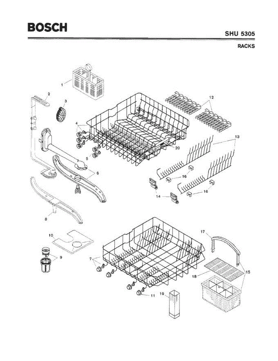 The Silverware Basket Assembly is an OEM part for Bosch dishwashers. This basket is located in the lower rack and is used to hold utensils securely during the wash cycle.