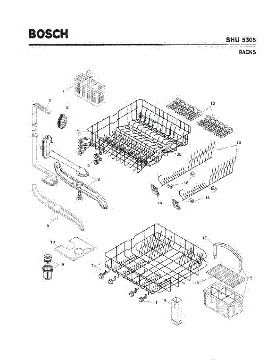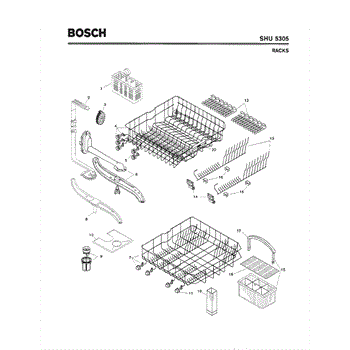 The Silverware Basket Assembly is an OEM part for Bosch dishwashers. This basket is located in the lower rack and is used to hold utensils securely during the wash cycle.