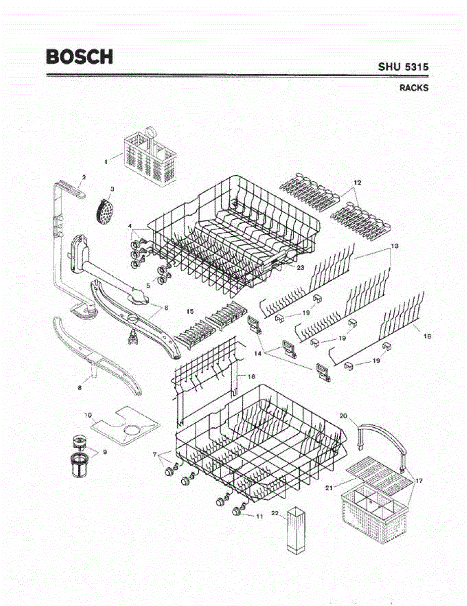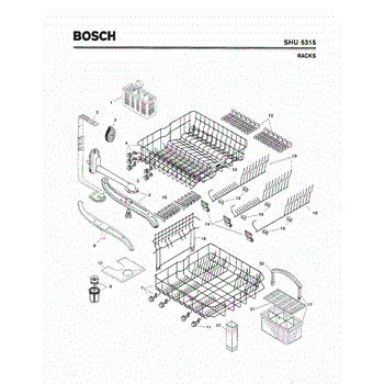 The Silverware Basket Assembly is an OEM part for Bosch dishwashers. This basket is located in the lower rack and is used to hold utensils securely during the wash cycle.