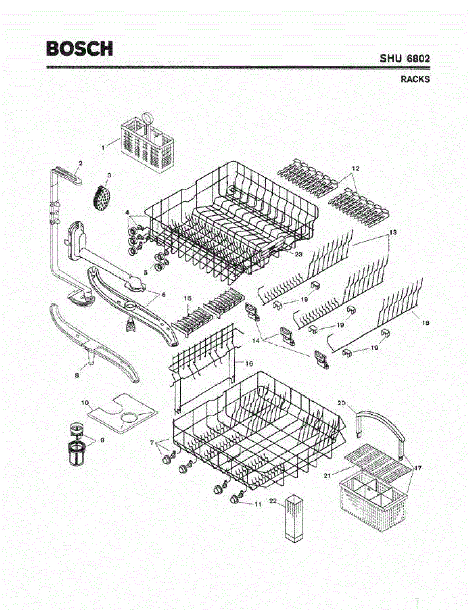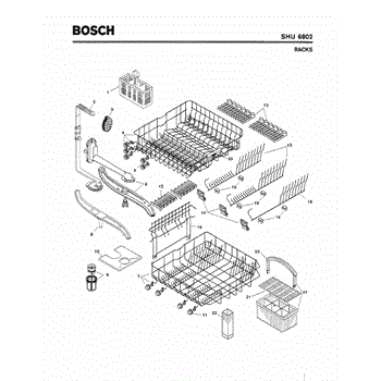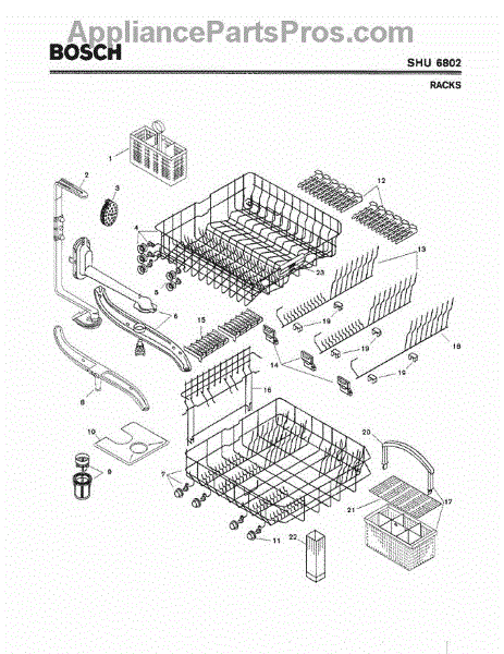 The Silverware Basket Assembly is an OEM part for Bosch dishwashers. This basket is located in the lower rack and is used to hold utensils securely during the wash cycle.