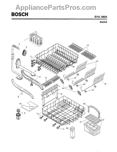 The Silverware Basket Assembly is an OEM part for Bosch dishwashers. This basket is located in the lower rack and is used to hold utensils securely during the wash cycle.