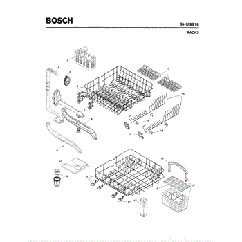 The Silverware Basket Assembly is an OEM part for Bosch dishwashers. This basket is located in the lower rack and is used to hold utensils securely during the wash cycle.