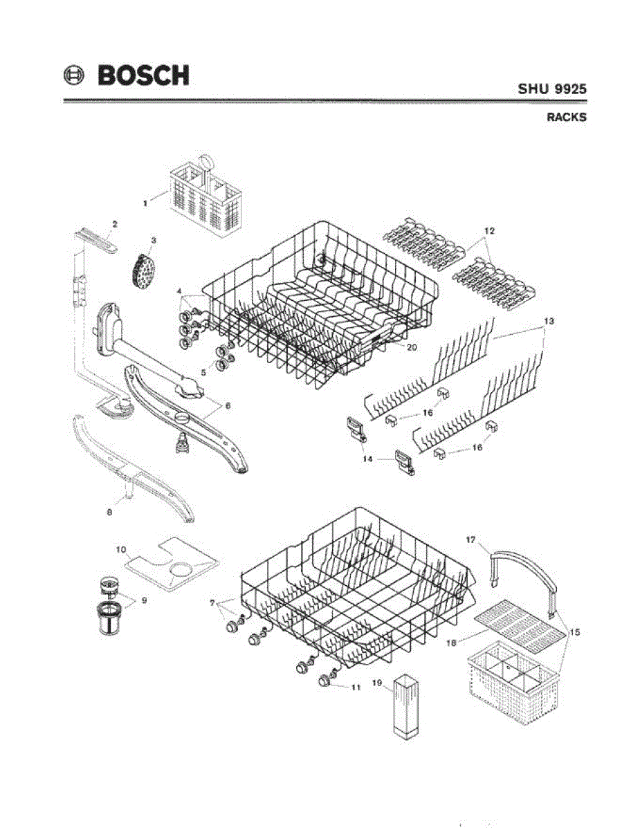 The Silverware Basket Assembly is an OEM part for Bosch dishwashers. This basket is located in the lower rack and is used to hold utensils securely during the wash cycle.