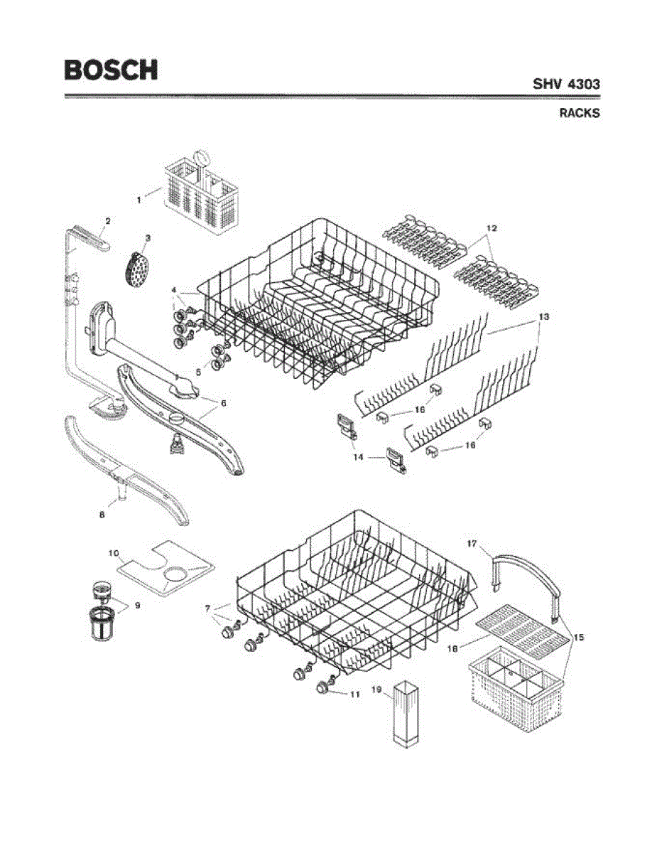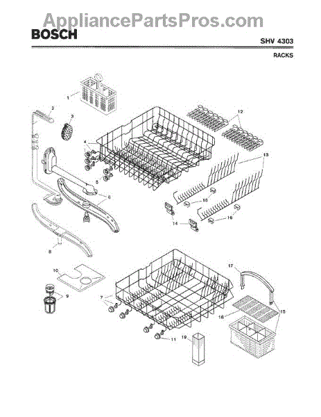 The Silverware Basket Assembly is an OEM part for Bosch dishwashers. This basket is located in the lower rack and is used to hold utensils securely during the wash cycle.