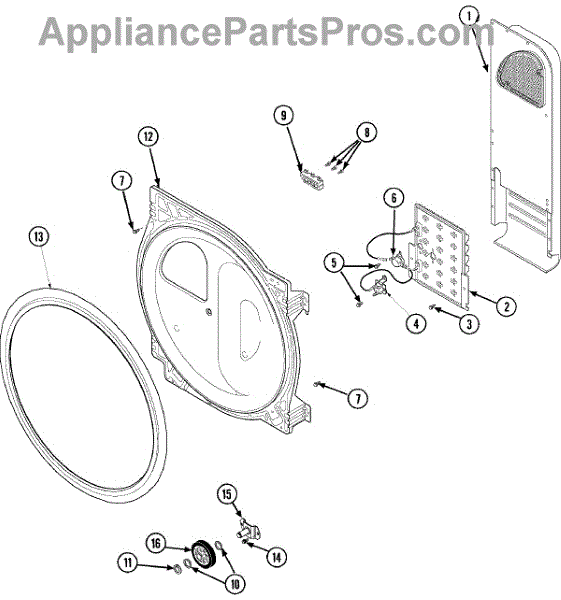 Parts for Maytag SDE5401AYW: 06 - Rear Blkhd, Air Duct, Roller&Htr (Ele) Parts