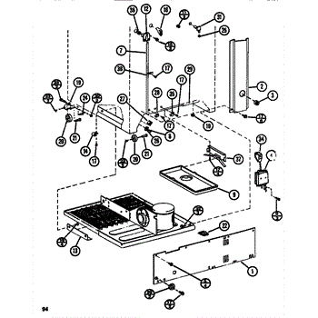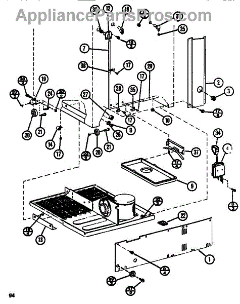 This factory screw secures appliance components to their mounting points. Replace missing, worn, or stripped hardware to restore a tight fit, proper alignment, and quieter operation across the affected assembly.