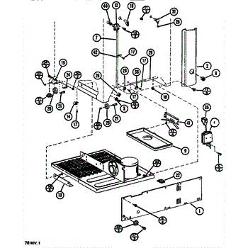 This factory screw secures appliance components to their mounting points. Replace missing, worn, or stripped hardware to restore a tight fit, proper alignment, and quieter operation across the affected assembly.