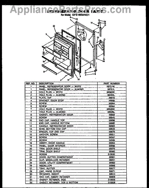 Parts for Amana GFS185MN01 / GFS185MN0 1: 06 - Ref Door Parts