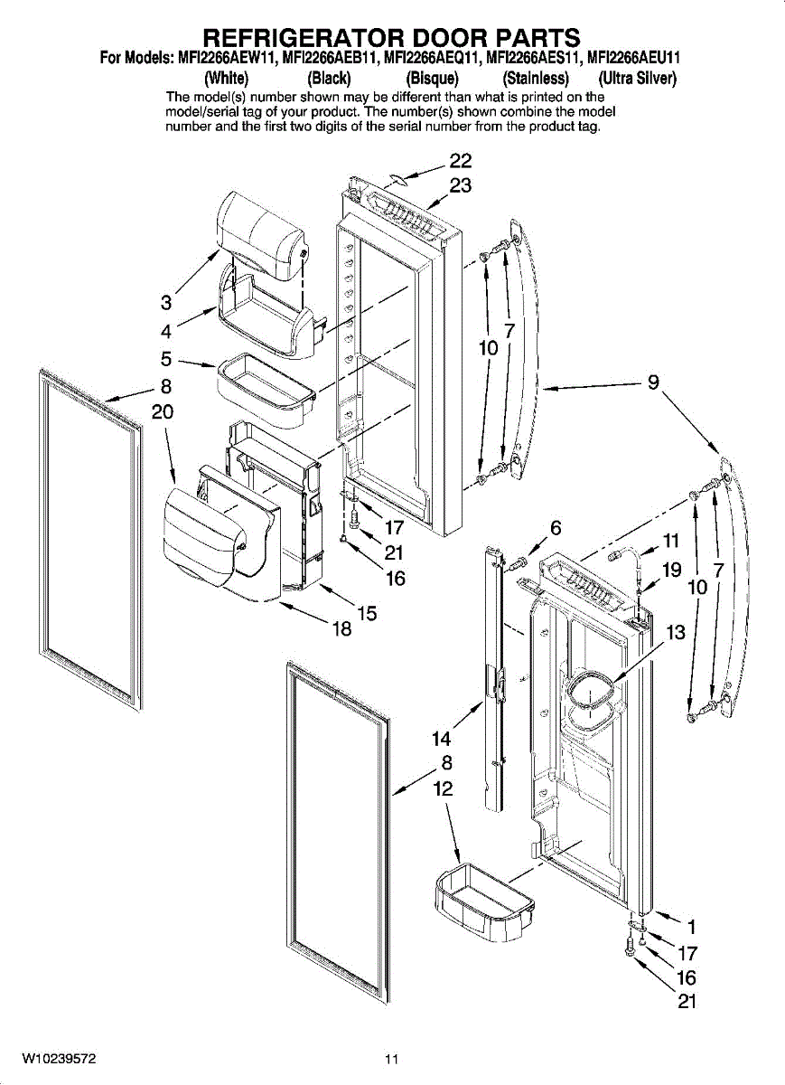 The Door Gasket is an OEM replacement part for Whirlpool side-by-side refrigerators. This black gasket provides a critical moisture and air seal around the refrigerator and freezer door openings. Causes of failure may involve cracking or degradation from mechanical stresses or chemical exposure over years of use. Temperature fluctuations can also damage sealing integrity. Symptoms of a defective door gasket include: