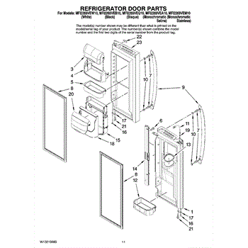 The Door Gasket is an OEM replacement part for Whirlpool side-by-side refrigerators. This black gasket provides a critical moisture and air seal around the refrigerator and freezer door openings. Causes of failure may involve cracking or degradation from mechanical stresses or chemical exposure over years of use. Temperature fluctuations can also damage sealing integrity. Symptoms of a defective door gasket include: