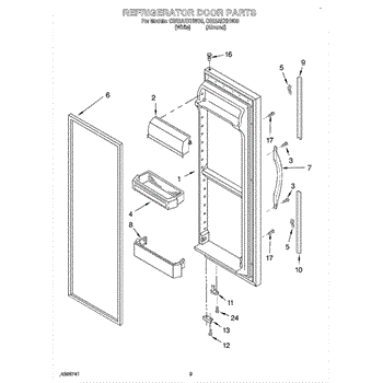 Door assembly, incluces inner and outer door panels along with door gasket.