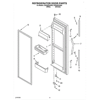 Door assembly, incluces inner and outer door panels along with door gasket.